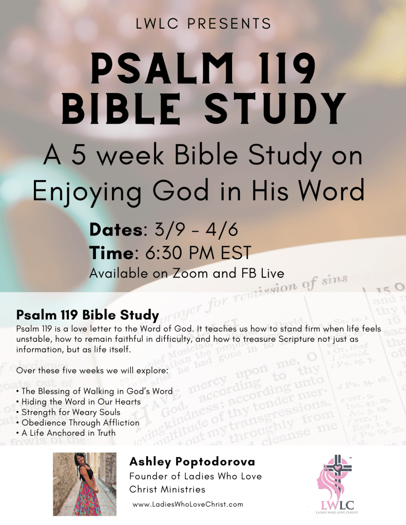 - 5 Ways to Get the Most Out of Your Bible Study Time.Hello and a warm welcome to the Ladies Who Love Christ Ministries blog. We are so grateful you are here with us. So much has been taking place around the Ministry … Continue reading 5 Ways to Get the Most Out of Your Bible Study Time.